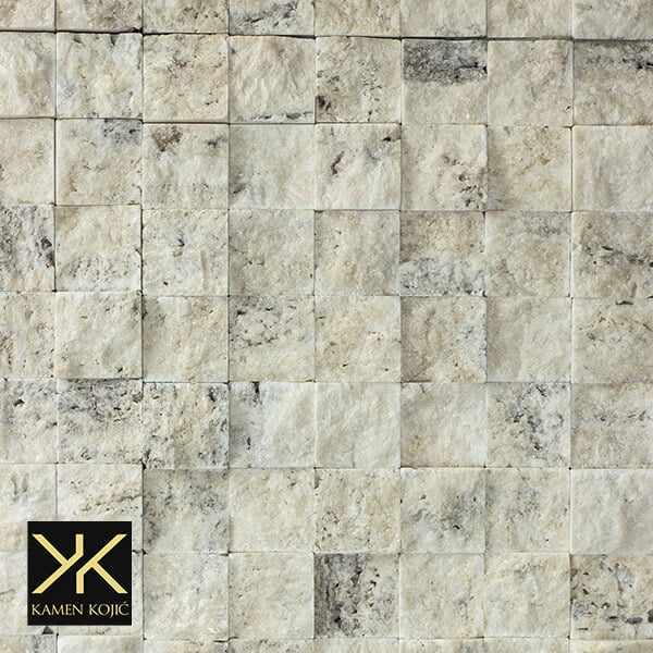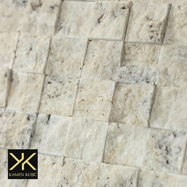 Travertin beli mozaik se pravi tako što se prirodni kamen sečen u kockice lepi za mrežicu koja drži sve u jednom obliku. Tako napravljen proizvod se lepi na zidne površine sa građevinskim lepkom. Mozak od kamena belog travertin se isključivo pravi od uviznog travertin kamena i veoma je lepe boje i strukture. Otporan materijal na sve atmosferske uticaje tako da se može koristiti i na spoljnim površinama. Ako vam se možda ova boja ne sviđa pogledaj te još vrsta mozaika u kategoriji mozaik od kamena